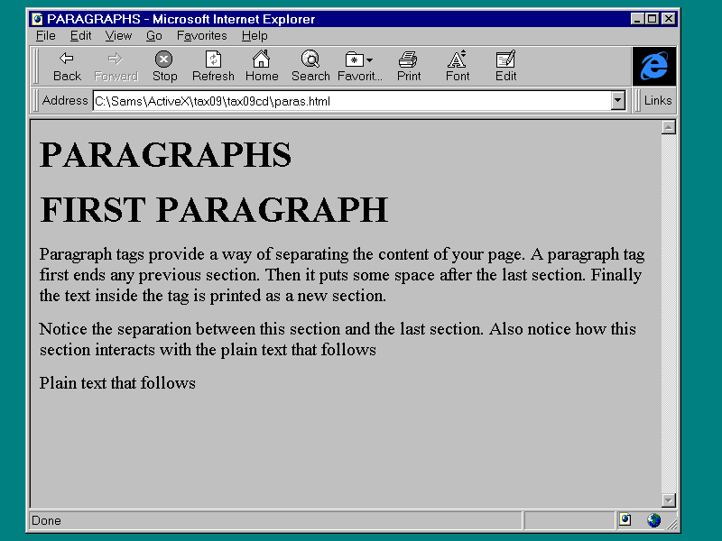 of Listing 2.6. Listing 2.6 produces the page shown in Figure 2.6. Paragraph Tags