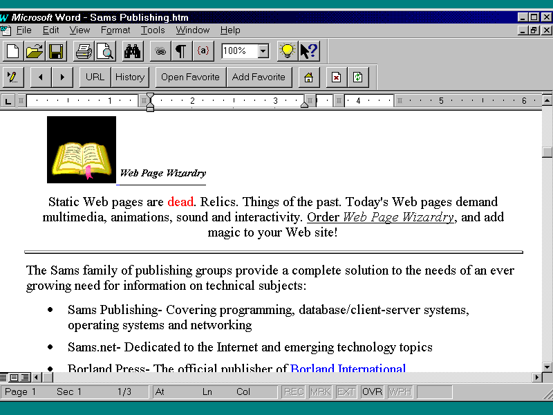 add-in that gives Word the capability to read and write Web pages. Its biggest advantage