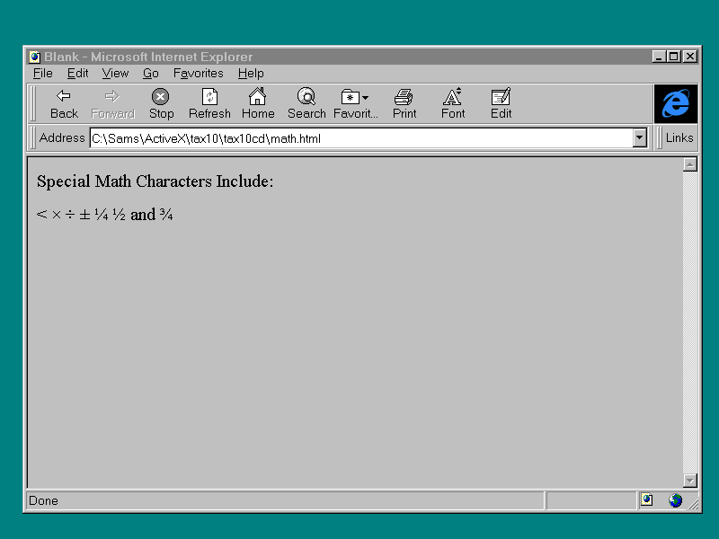 to dissect it. Save the HTML file as act1.aspl. Load the file into your browser. It should