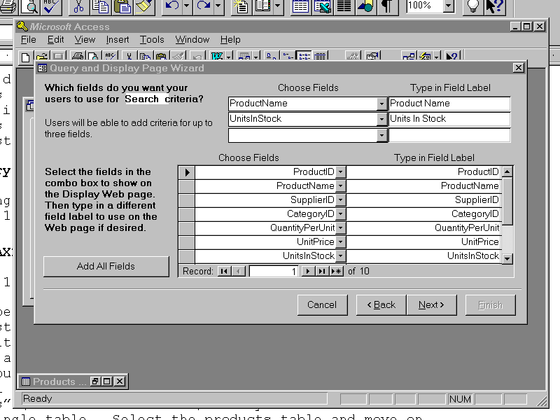in the Units In Stock field. Run the original search by entering c% in the Product Name
