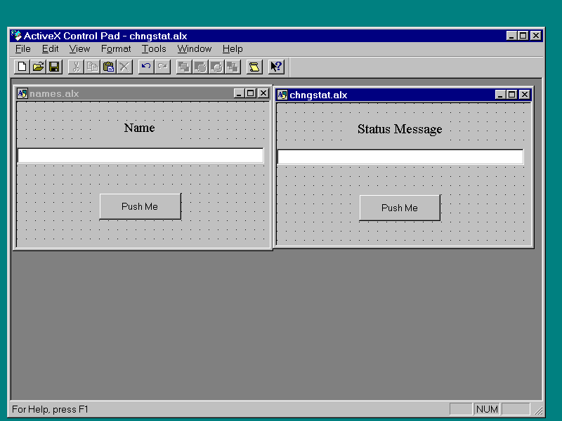 in yesterday's ActiveX Control Pad example, and will be putting code inside events in