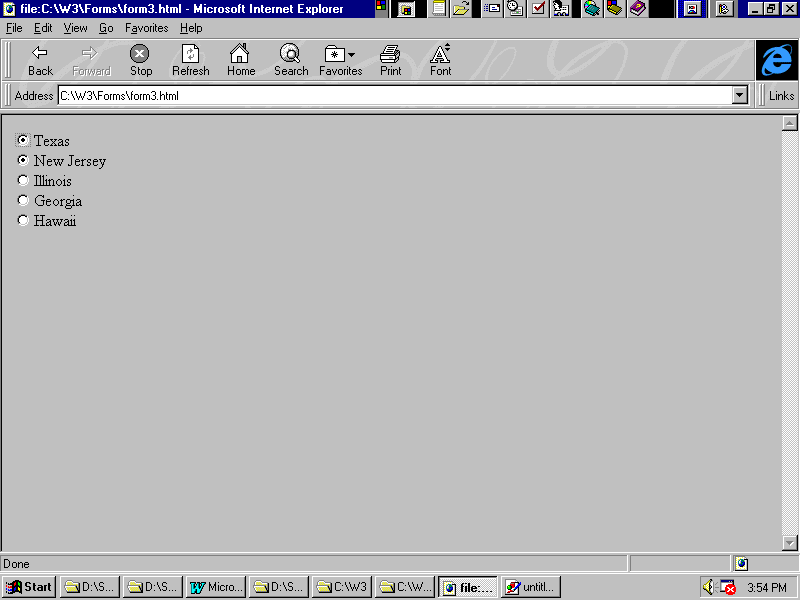 radio buttons can be placed within one <FORM> container tag to allow the user to