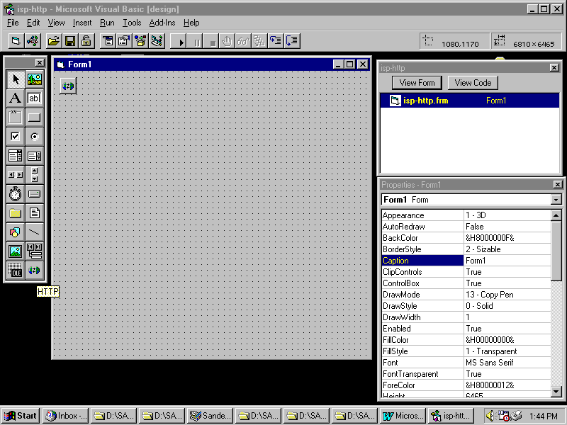 pointing to the HTTP control in the lower-right corner of the tool box.