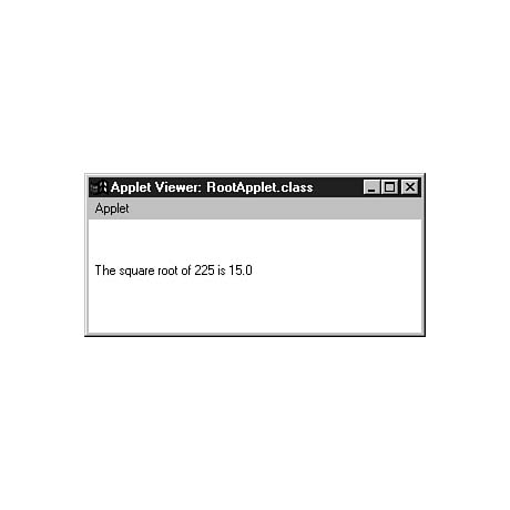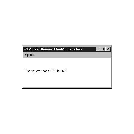 Save the file when you're done, and load the page using appletviewer again. The output should resemble Figure 4.2. Change the value of the VALUE attribute in the RootApplet.asp file and run the program again. Try this several times, and you'll see that your program is now flexible enough to handle any number.