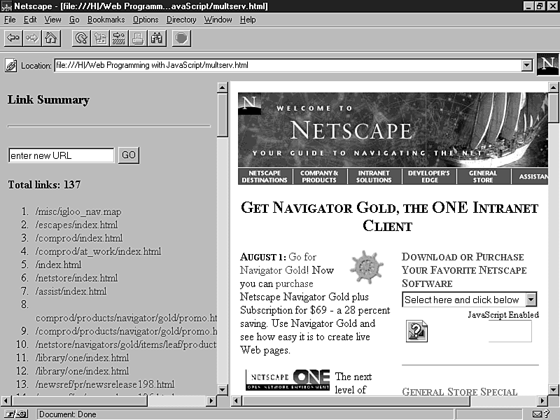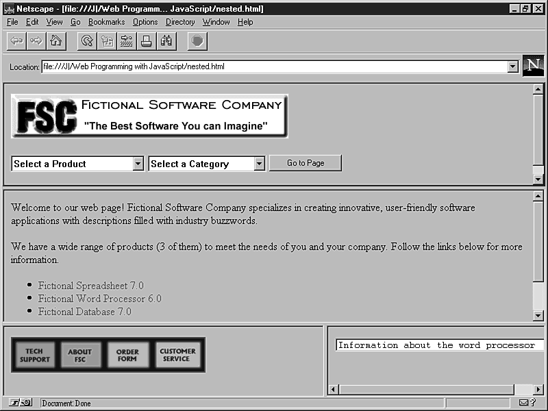 of JavaScript. You learned the basics of using frames in Chapter