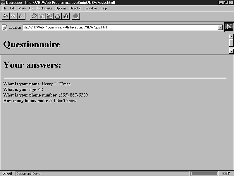 pages, let's create a questionnaire. This program asks several
