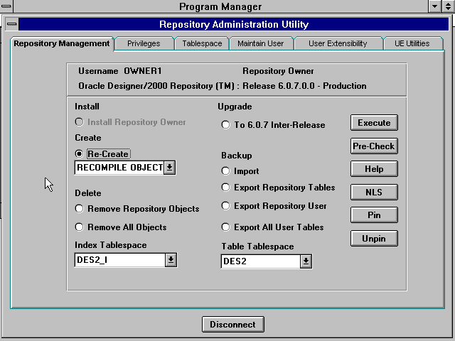 As seen in the previous discussion of Designer/2000 installation, the first utility that will be used is the Repository Administration Utility. This utility will perform all installations and upgrades of the repository. It will also provide for easy
