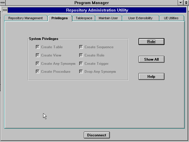 There will also be a button always visible at the bottom of the dialogue box labeled Disconnect. This button will allow the termination of the current repository owner session.