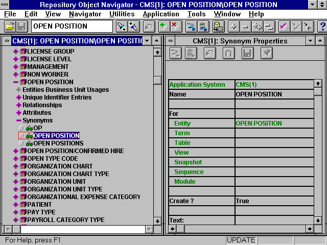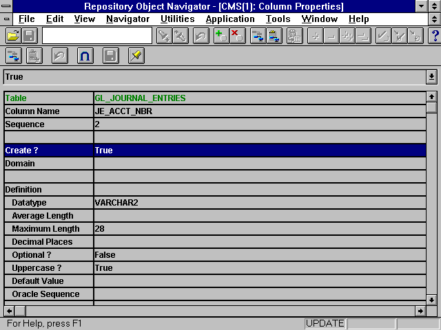 Provides access to the Repository Object Navigator's online help. Also provides access to the Repository Object Navigator's about box that will not only give it's version number, but also the repository version, database version, and many others that