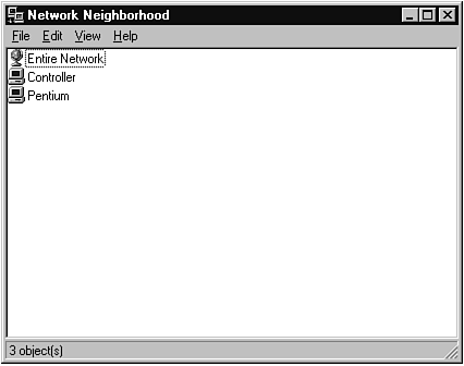 Double-clicking the Entire Network entry in the Network Neighborhood enables you to browse all domains accessible to the current machine. Note that it is possible to see network systems and resources without actually having access to use them.