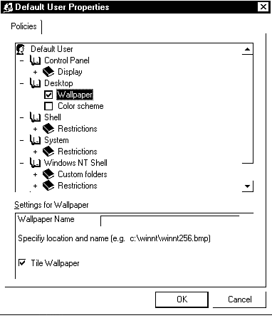 Almost all the properties of a user's environment are set by the User Manager tool. Microsoft has continued to enhance this feature so that it is a complete tool for administrators. The System Policy Editor (which is not yet integrated into User Manager) enables you to set a series of parameters that relate to the appearance of the user's desktop, which operating system functions (i.e. Control Panel) they are allowed to access and other very fine controls over user activity. (See Figure 16.16.) If you are running servers exclusively using a client-server architecture, you probably will not use the System Policy Editor often because your users will access the server through the network for shared resources. If you have a number of users who actually work on NT workstations, you might want to take the time to become familiar with the functionality that this editor allows you to control on your user accounts.
