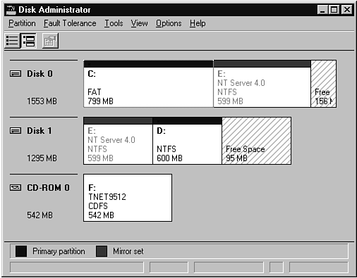 Figure 23.2 shows our 599 MB system partition on disk 1 mirrored on disk 0.