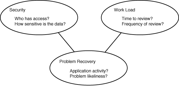 - What are your chances of having hardware or other system problems that might not be noticed for some time? This might lead you to retain your audit information longer than in an environment where you are checking the logs daily for any indication of problems.