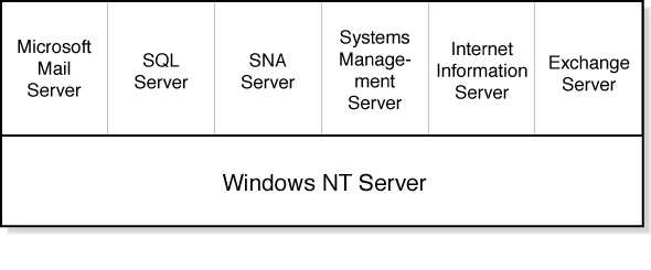 These services are not required by everyone and therefore would not make sense to be bundled with the operating system itself and therefore add to the cost of the operating system. However, they are used in enough applications as to require tight integration with the basic services that the operating system provides. What Microsoft is hoping is that you not only want tight bundling with the operating system, but tight bundling among these services. This is one of the main goals of BackOfficeprovide a tightly bundled set of add-on services for the Windows NT operating system.