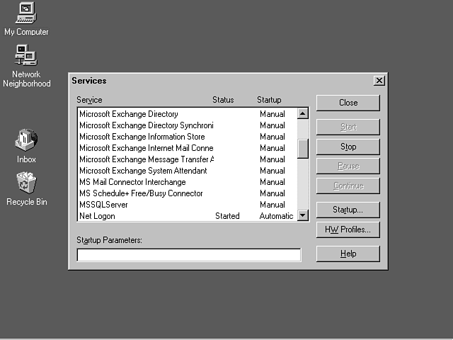 The next key feature of NT that BackOffice relies upon involves the system management tools and utilities. Much like user access control, each application could write its own management and maintenance utilities. Administrators would have to get into the mindsets of each of the people who wrote the various tools before they could become proficient in using them. However, because most of these tools perform the same conceptual functions (showing a log of warning messages and other events, or starting and stopping the processes associated with the applications, for example), it would be much easier on the administrators if they used one tool to maintain all these applications. BackOffice still has a few separate administrative tools that are unique to the various packages, but they do make use of a number of common utilities including the following: