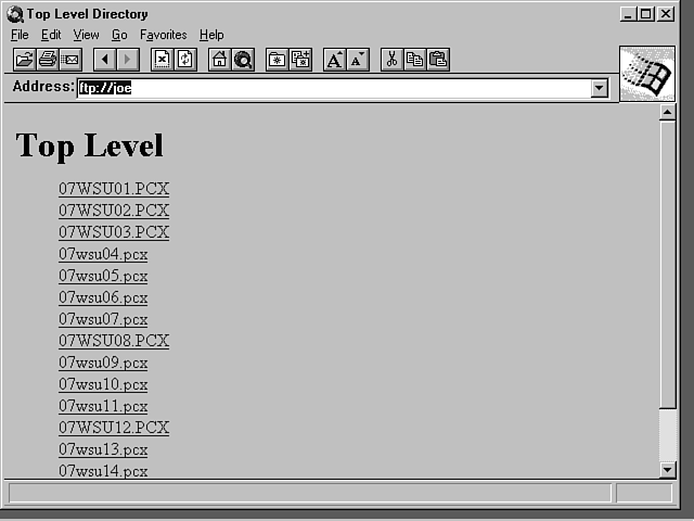 Using Internet Explorer to browse an FTP site.