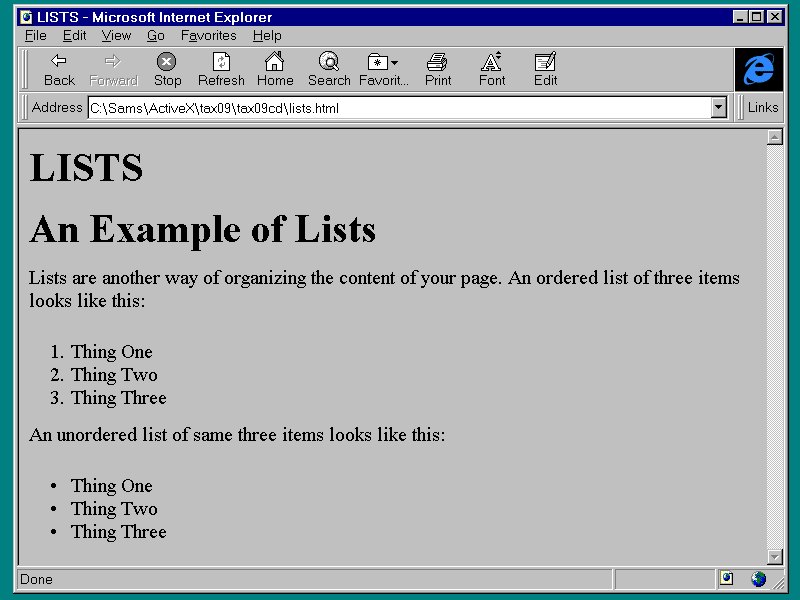 Example: Listing 2.10 shows how these two tags are used. Listing 2.10. An ordered and unordered list .