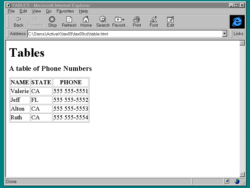2.11. A table of phone numbers. Notice the use of the BORDER attribute . If the