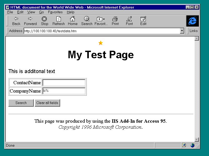 CGI basics. For now, note that this form is passed to a script called testdata.idc, shown
