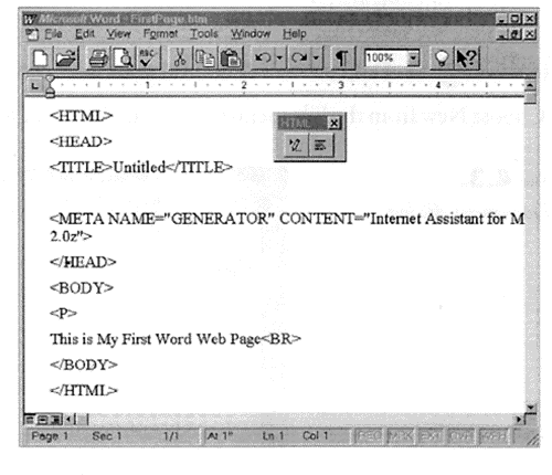 document, go back to Word and choose HTML Source from the View menu. Your screen will