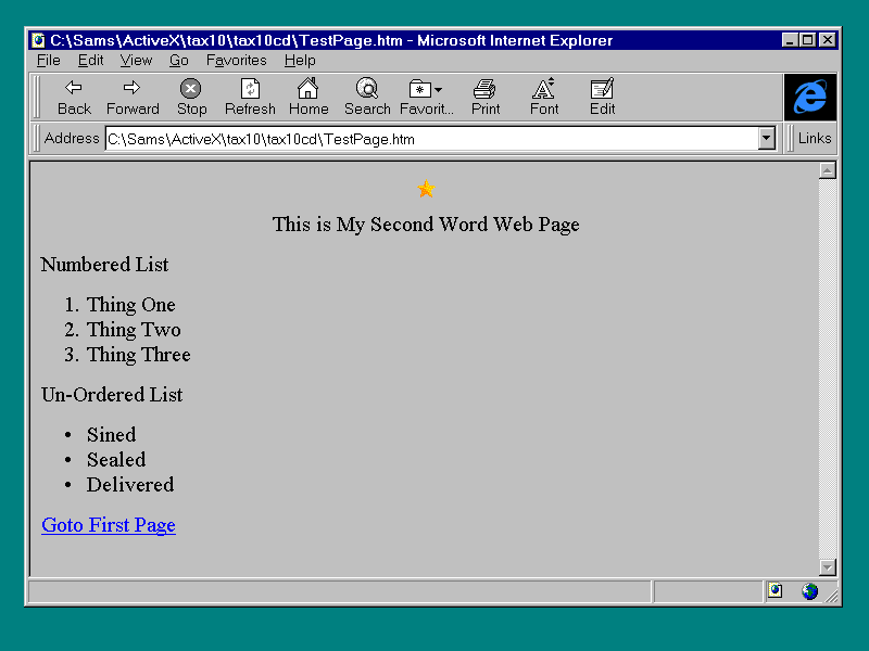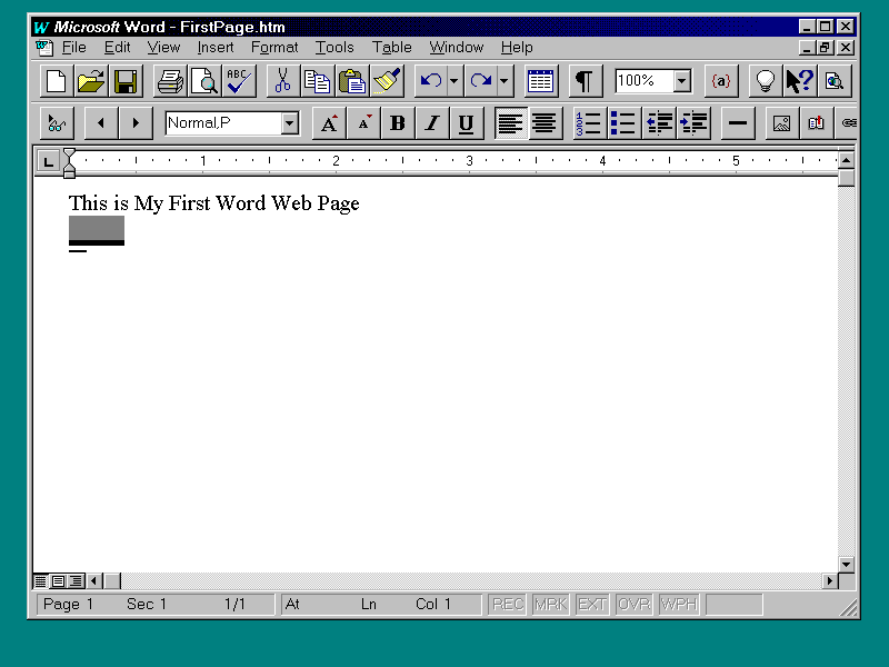 Page. Save it as FirstPage.asp. (Don't fight the default extension Word wants to add.)
