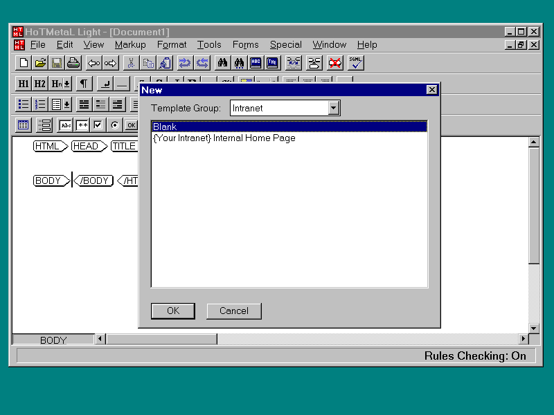 templates. Choose Intranet/Intranet Home Page. You should wind up with a screen that looks