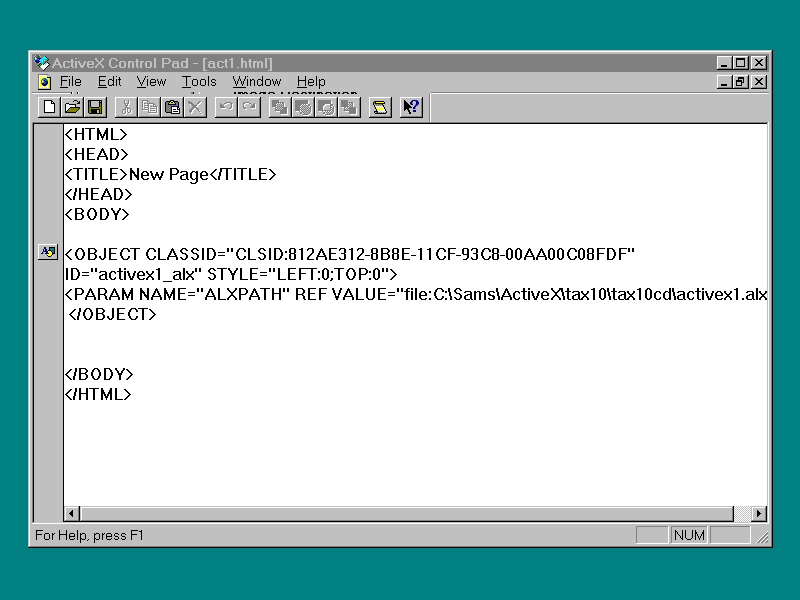 Delphi, this will look familiar. One of the most important things ActiveX Control Pad