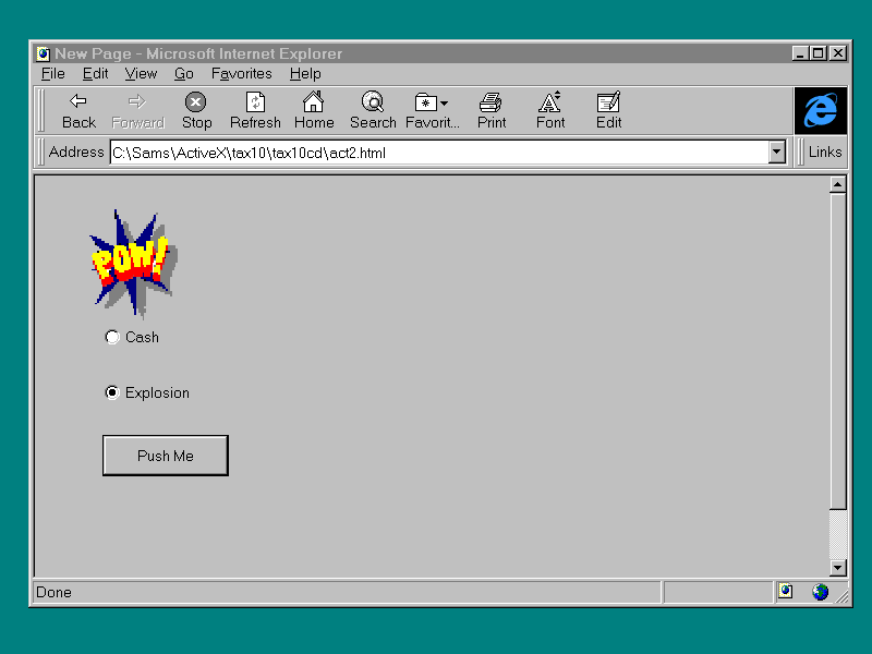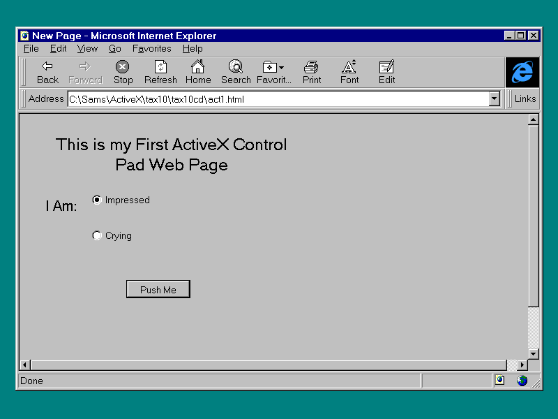 your page look like Figure 4.33. Figure 4.33. First ActiveX