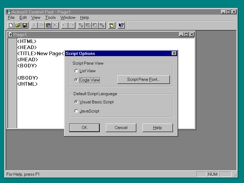 Launch the ActiveX Control Pad. Before I do