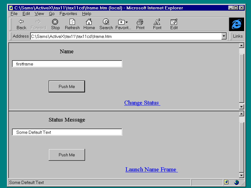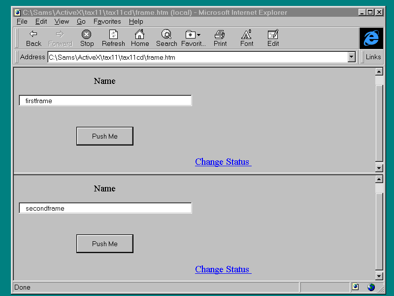 and bring up frame.asp in your browser. After clicking both Push Me buttons, your screen