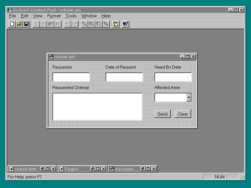 will be the Change Request page. You will be putting some ActiveX controls here to collect