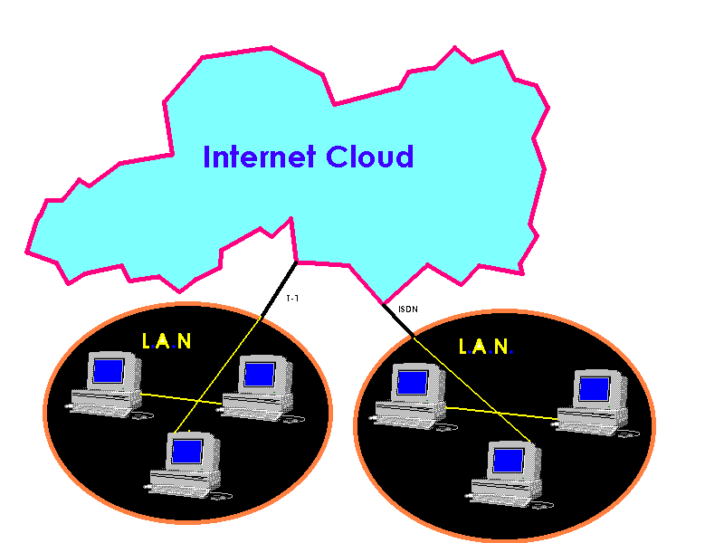 your LAN would probably be hooked up to the Net through a dedicated ISDN or T1 line. As a