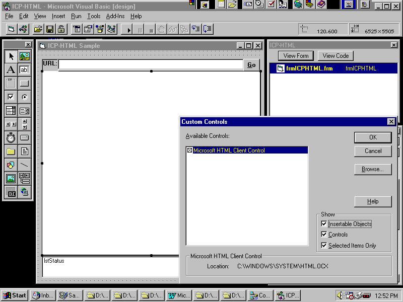 box and, after pressing the command button, the URL is launched in the HTML control.
