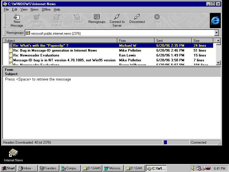 You are, by now, familiar with the standard TCP/IP protocolsSMTP/POP3, NNTP, FTP,