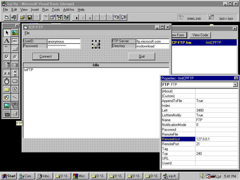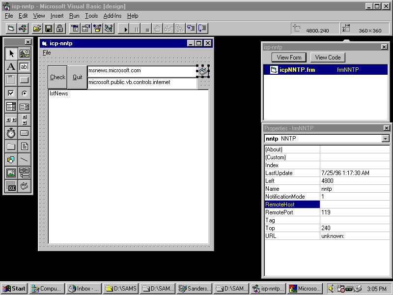 HTTP, and so on. A wonderful benefit of the WinSock control is the ability it gives a