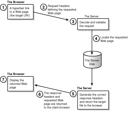 So what happens when someone clicks on your URI? Figure 2.1 shows the sequence of events that occur when the browser requests and the server returns a Web page. Your CGI program and the Web page calling it are closely linked (pun intended).