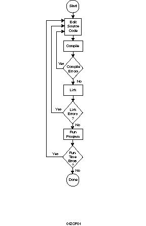 code, recompiling and relinking, and then rerunning the program. This cycle is represented