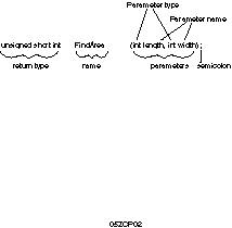 This prototype declares a function named Area() that returns a long and that has two parameters, both integers. Although this is legal, it is not a good idea. Adding parameter names makes your prototype clearer. The same function with named parameters might be