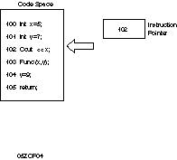 Registers are a special area of memory built right into the Central Processing Unit (or CPU). They take care of internal housekeeping. A lot of what goes on in the registers is beyond the scope of this guide, but what we are concerned about is the set of registers responsible for pointing, at any given moment, to the next line of code. We'll call these registers, together, the instruction pointer. It is the job of the instruction pointer to keep track of which line of code is to be executed next.
