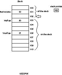 stack is considered to be off the stack and invalid. Figure 5.6 illustrates this