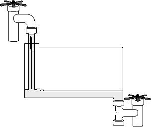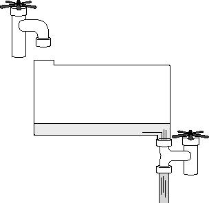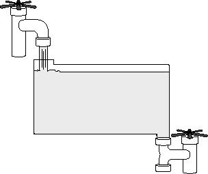 Once the buffer is empty, the bottom valve closes, the top valve opens, and more water flows into the buffer tank. Figure 16.4 illustrates this.