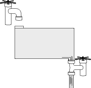 Picture water trickling into the top of a tank, and the tank filling and filling, but no water running out of the bottom. Figure 16.2 illustrates this idea.