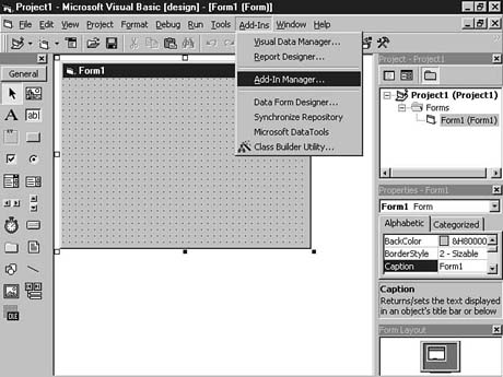 not already done so, start Visual Basic 5 and select Report Designer from the Add Ins