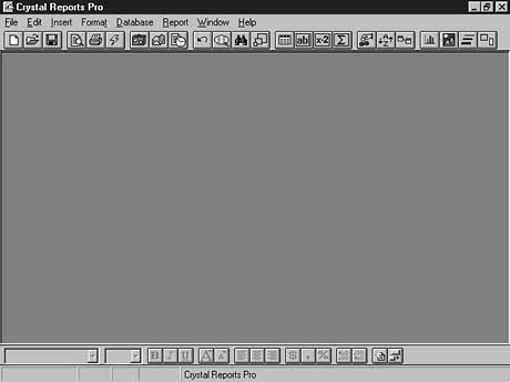 box. Press Proceed to Crystal Reports Pro. You'll now see the main Crystal Reports Pro