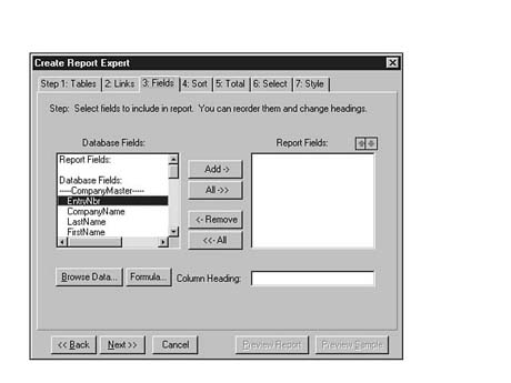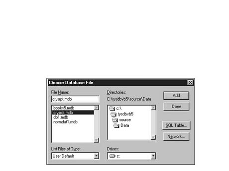 Access, FoxPro, dBASE), including ODBC data sources. You add fields by selecting them from