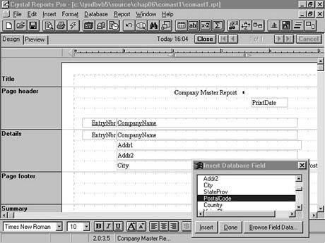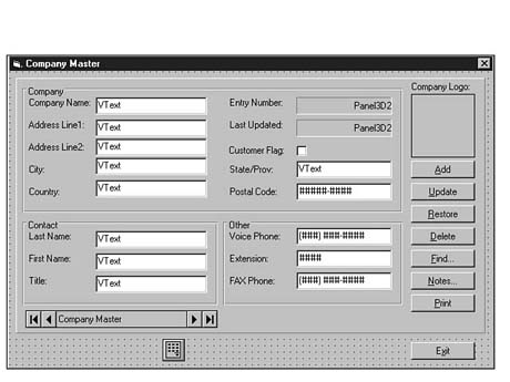 CompanyMaster data entry form. You'll get rid of the Crystal Reports Pro Control on the