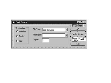 main form because you have one on the Print Report dialog box now. You'll also set two