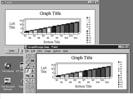 images. Figure 11.9 shows both the Visual Basic 5 form and Microsoft Paint running at the