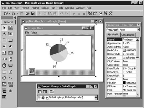 Also, you built a graph ActiveX DLL Object Library that you can use to display virtually any dataset in a variety of graph formats. This library lets you save the graph to disk, send the graph to the printer, or copy the graph to the Windows Clipboard for placement in other Windows programs by way of the Paste Special operation.