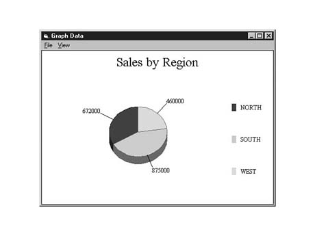 As Integer) ` ` handle graph menu requests ` Dim objDG As New DataGraph Dim strSQL As String ` Select Case Index Case 0 ` sales by region ` strSQL = "SELECT Region, SUM(Amount) AS SalesTotal FROM " strSQL = strSQL & "SalesData WHERE CompanyName<>'Budget' GROUP BY ÂRegion" ` objDG.DatabaseName = Data1.DatabaseName objDG.SQLSelect = strSQL objDG.GraphType = dgPie3d objDG.GraphField = "SalesTotal" objDG.GraphTitle = "Sales by Region" objDG.LegendField = "Region" ` Case 1 ` sales by month Case 2 ` sales by customer End Select ` objDG.ShowGraph ` End Sub |